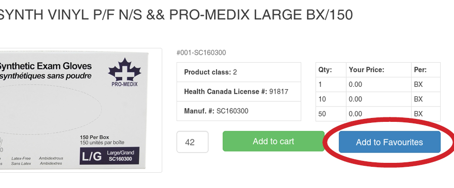 Utilisez les cases de la colonne Ajouter pour indiquer quels produits vous souhaitez ajouter à votre liste de favoris. Puis, entrez les quantités désirées et commentaires optionnels. Ensuite, cliquez sur le bouton Ajouter les produits sélectionnés à la liste.