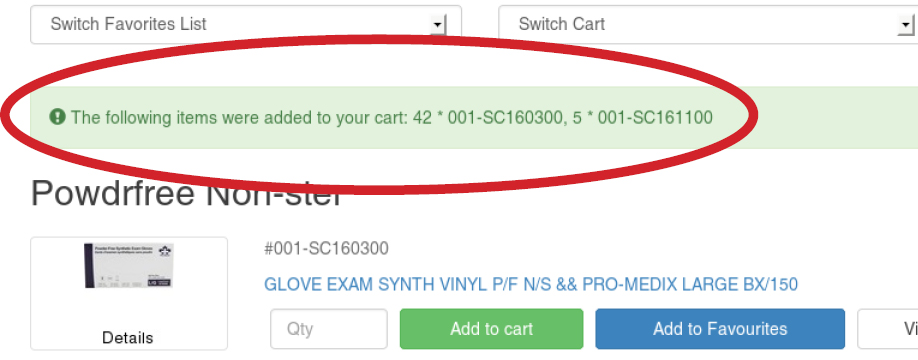 The message at the top of the page will provide information on whether or not products were successfully added to the cart: